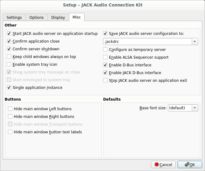 Note that above I previously had “alsa_seq” as the MIDI driver, but immediately as I switched this setting to “Jack”, the system no longer froze.